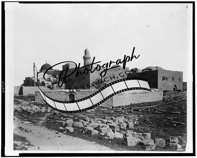 Masjid al-Aqsá,mosques,stone structure,buildings,hills,Jerusalem,P Bergheim,1860