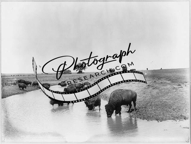 Buffalo at water,c1904,Field,tree,C.A. Kendrick