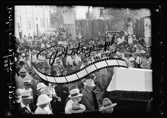 Summary: Photo shows funeral of poet Hayyim Nahman Bialik (1873-1934).