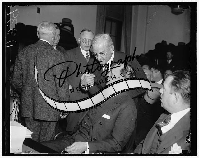 Title: Big business at Industrial-Labor conference. Washington, D.C., Dec. 11. Big business was well represented at the Conference of Industry and Labor in the Capitol today. Here we see, left to right: Edward A. Filene, President of William Filene's sons of Boston; Maj. George L. Berry, the President's Coordinator for Industrial Cooperation who presided the meeting; and Earl H. Walker, Labor Assistant to the Vice President of Shell Petroleum Corp., of St. Louis
