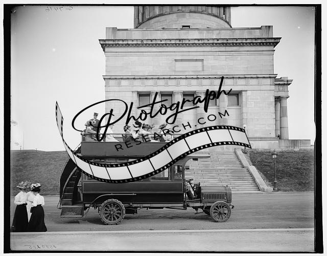 Rubber-neck auto,tourists,Ulysses S Grant,buses,Riverside Drive,New York,NY,1900