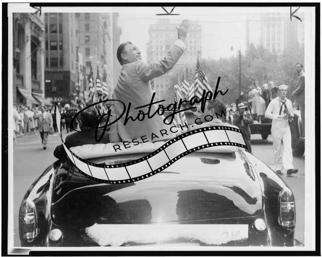Ben Hogan on back of car,Homecoming Parade on Broadway,New York,1953,Golfer
