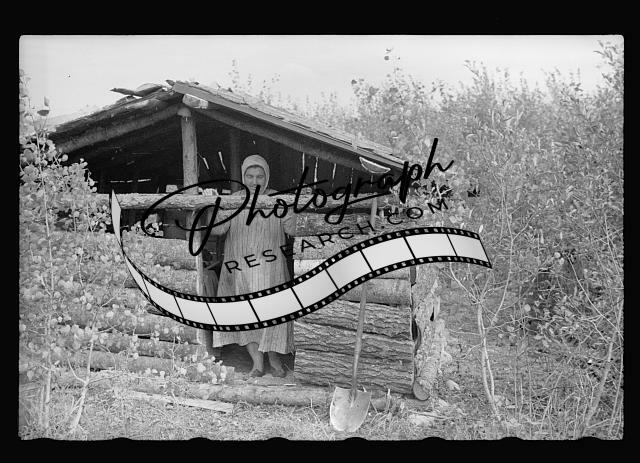 Woman living on cut-over,burnt-over farmland,Aitkin County,Minnesota,MN,1939,2