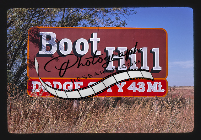 Billboard: 'Visit Boot Hill, Dodge City, 130 miles,' near Goddard, Kansas