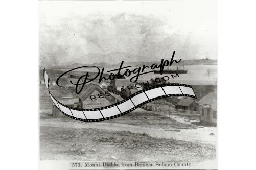 Mount Diablo,from Benicia,Solano County,River,ship,buildings,California,CA,1866