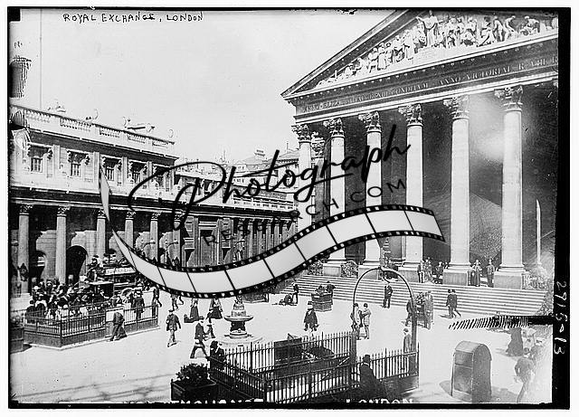 Royal Exchange,London,England,1910-1915,people,buildings,fountain?