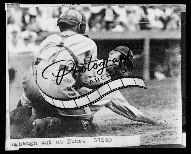 Title: [Bing Miller, of the Philadelphia Athletics, tagged out at home plate by Washington Nationals catcher 'Muddy' Ruel during baseball game]