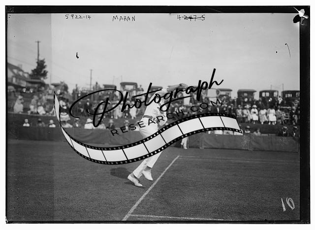 Mahan,tennis rackets,court,athletes,matches,stadium,stands,Bain News Service