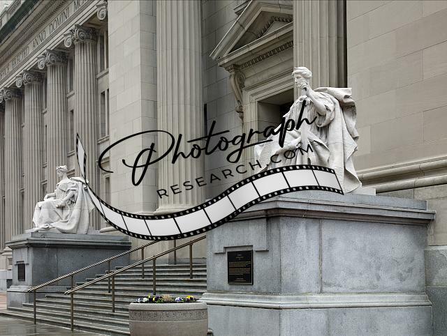 Title: Sculptures 'Industry,' 'Science,' 'Agriculture' and 'Literature' at the Birch Bayh Federal Building, Indianapolis, Indiana