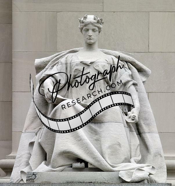 Title: Sculptures 'Industry,' 'Science,' 'Agriculture' and 'Literature' at the Birch Bayh Federal Building, Indianapolis, Indiana