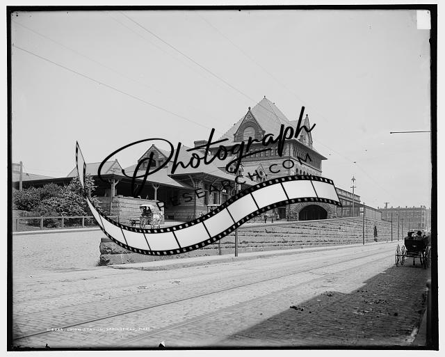 Union Station,railroad,buildings,tracks,carts,Springfield,Massachusetts,MA,c1905