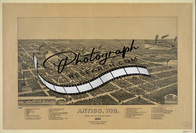 Bird's Eye View,City of Antigo,Wisconsin,WI,Langlade County,1886,Cityscape