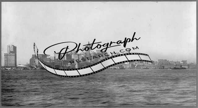 New York skyscrapers from Governor's Island,c1911,NY,water,buildings