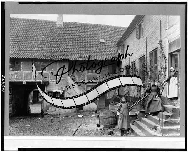 Inner courtyard,women,steps,buildings,dwellinngs,structures,Nyborg,Denmark,1890