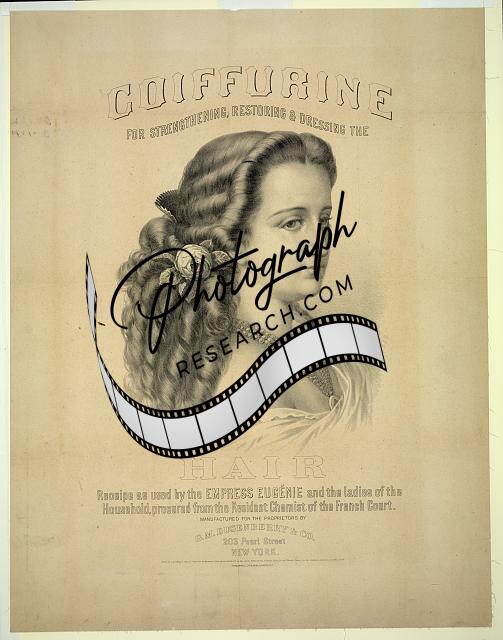 Coiffurine for strengthening,restoring & dressing the hair,1870,Woman,Curls