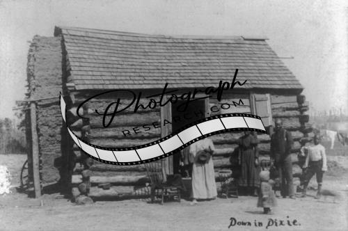 Down in Dixie,c1900,African American,outside log cabin,family,children,chair