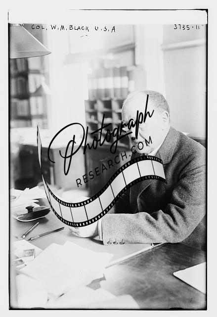 Colonel W.M. Black,USA,papers,desk,wearing glasses,Bain News Service