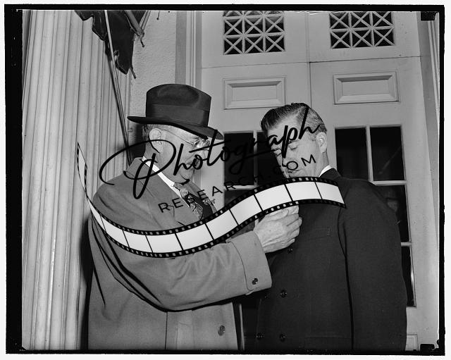 Secretary Wallace & Oscar Johnston,Pinning on Shamrock for St. Patrick's Day