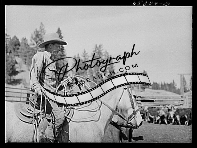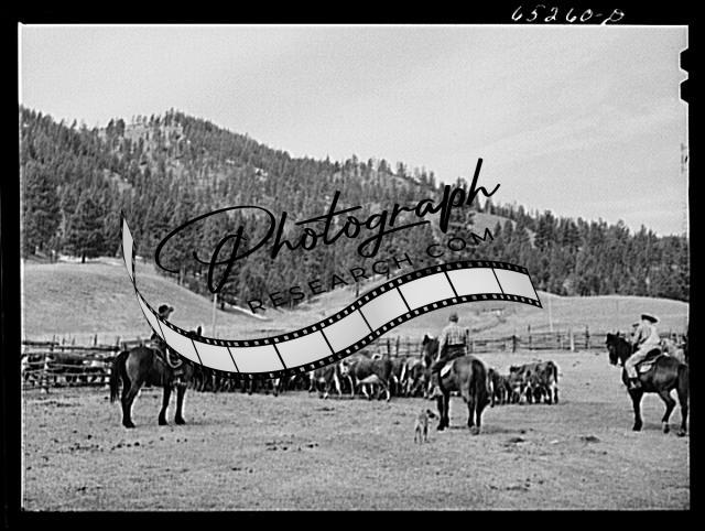 Title: Bitterroot Valley, Montana. Driving cattle into corral for branding and dehorning