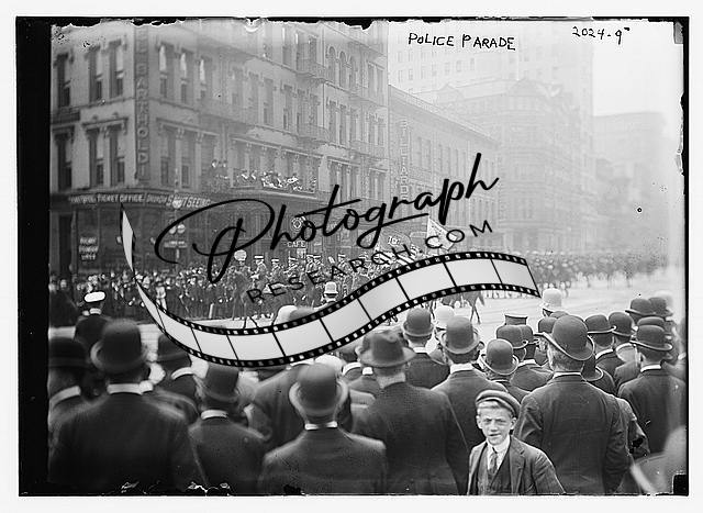 Police Parade,horseback,spectators,people,Bain News Service,flags