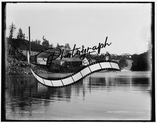 Quinnesec Falls,water,bridge,river,building,Michigan,MI,Detroit Publishing,1880