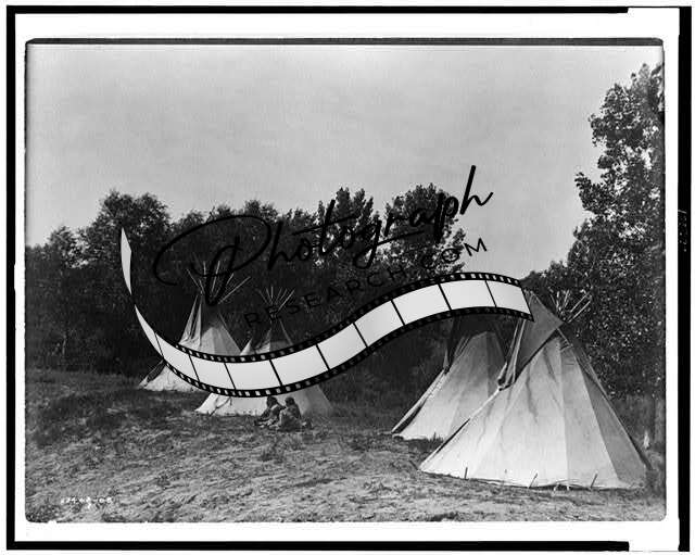 Assiniboin camp containing four tepees,Indians,ground,dwellings,tipis,c1908