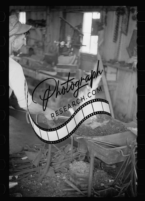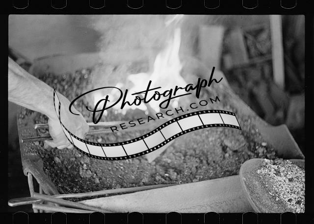 Blacksmith heating plow point,Southeast Missouri Farms,MO,May 1940,Vachon,FSA,2