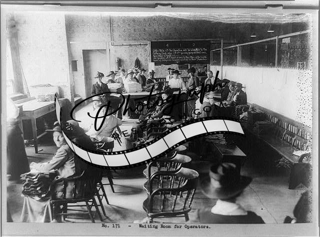 Waiting room,operators,clothing industry,women,employment,Jeffersonville,IN,1919