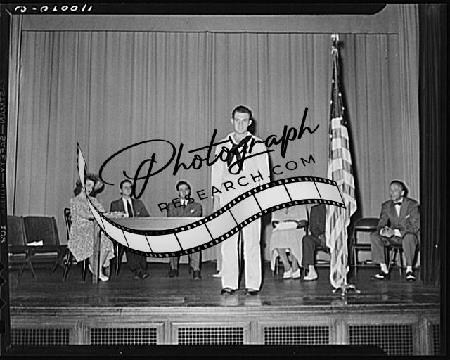 Title: Detroit, Michigan. Wall of American flags carried by Boy Scouts at the Blitz Scout meeting