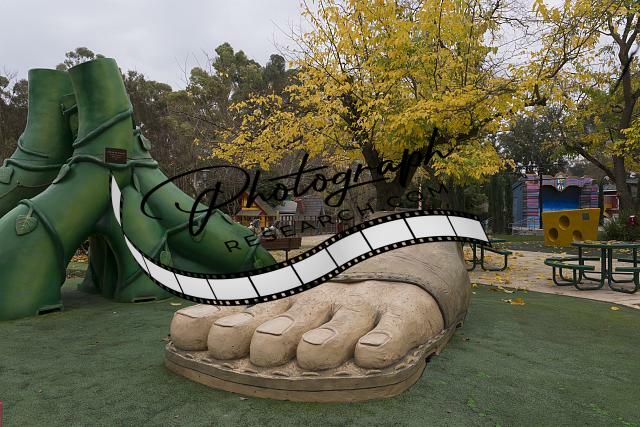 Title: A whimsical children's playset at the nonprofit Fairtale Town theme park, across from the city zoo in Sacramento, California's capital