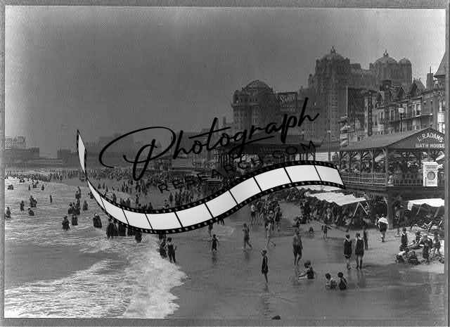 Atlantic City,New Jersey,NJ,Beach scene south from central pier,bathing suits