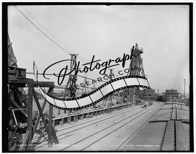 Phosphate elevators,piers,wharves,industry,tracks,Tampa pier,Florida,FL,1880