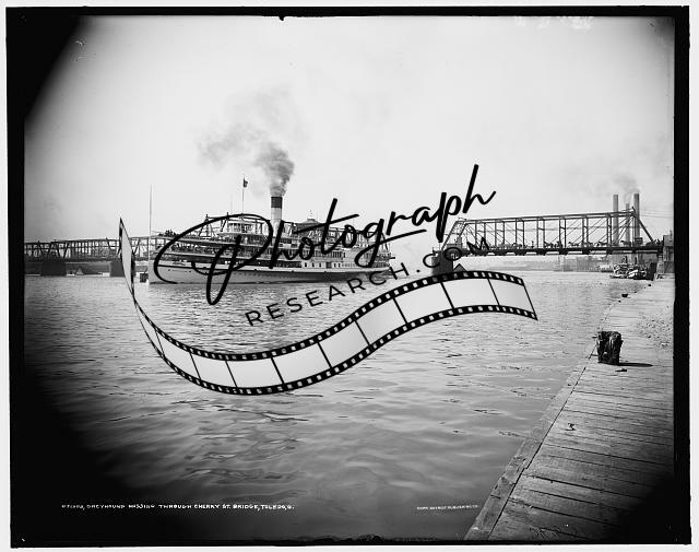 Greyhound passing through Cherry Street bridge,steamers,boats,Toledo,Ohio,c1900