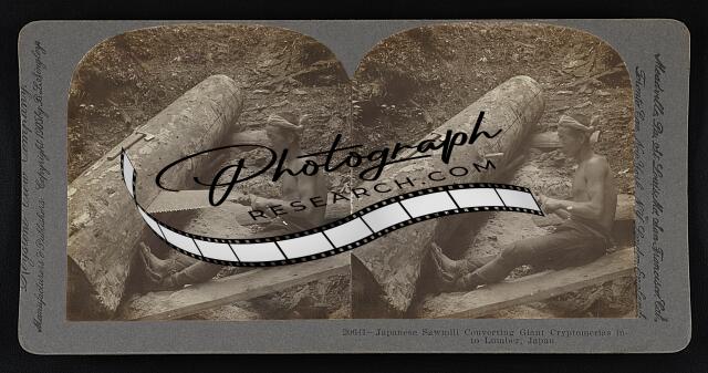 Japanese sawmill converting giant cryptomerias into lumber, Japan