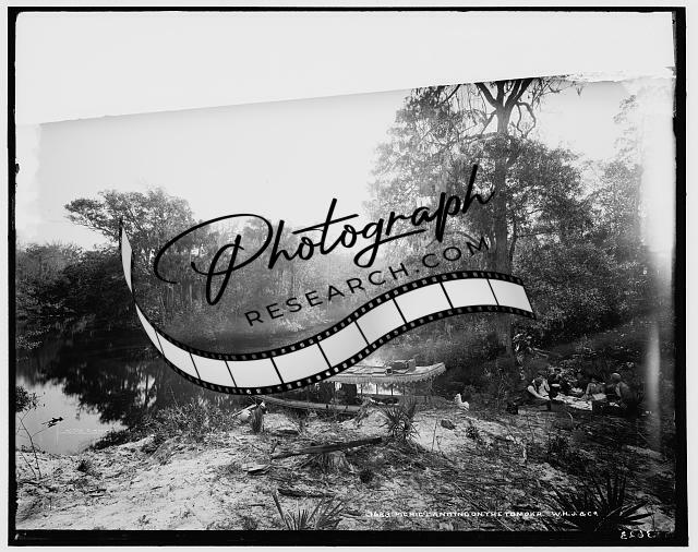 Picnic landing,boats,ship,eating,Tomoka River,Florida,FL,Detroit Publishing,1880