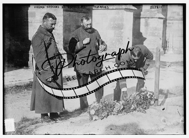 French Officers at graves of comrades,death,mourning,cross,men,Military