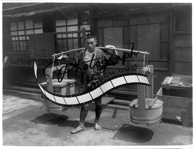 Bean Curd Delivery,Man carrying containers attached to pole,Japan,c1920