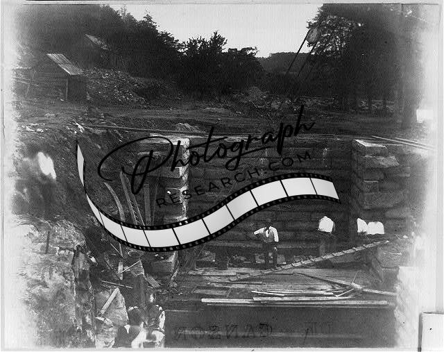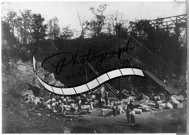 Men working with large stone blocks,1852-1860,equipment,machinery