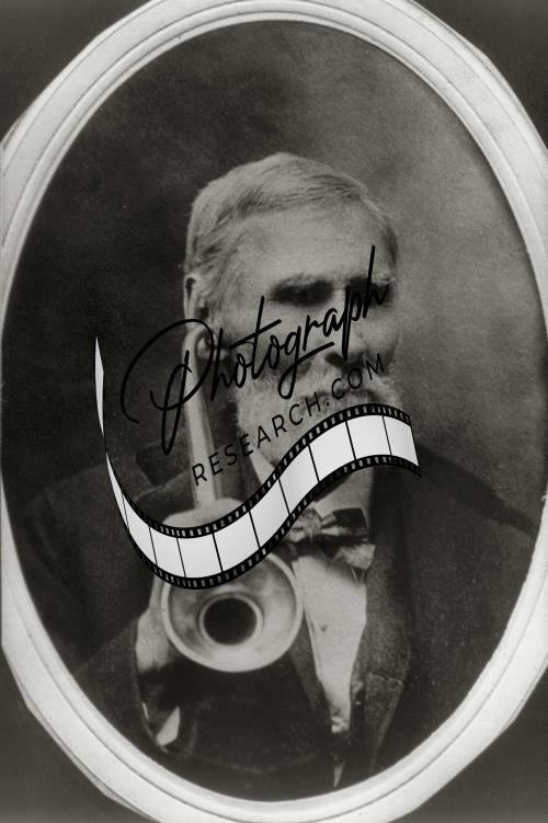 W.P. Zuber,c1900, holding ear trumpet to hear; aged 88