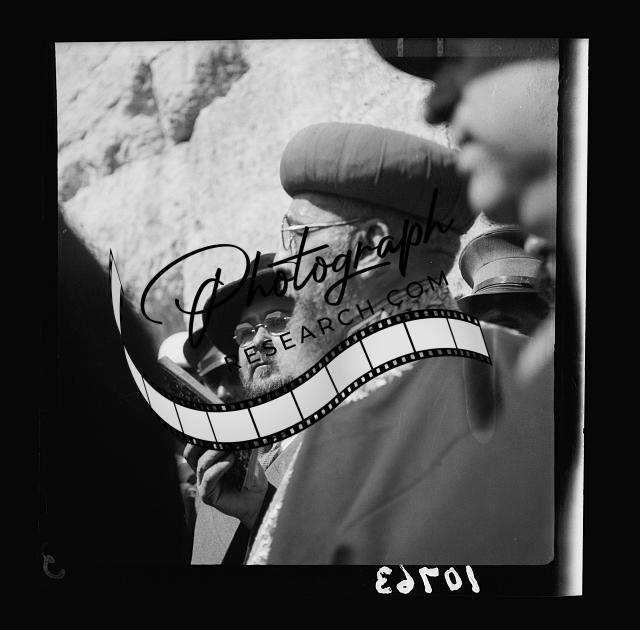 Rabbi Uziel prays for the first time at the Wailing Wall,after his enthronement