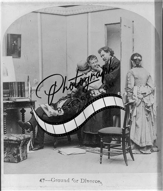 Gound for Divorce,Marriage,Divorce,c1889,Man w/ arm around woman,sleeping,hiding