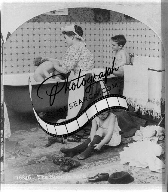 The Sponge Bath,c1897,Children receiving baths,Washing,Mother,Bathroom,Towels