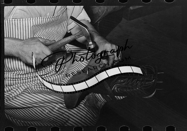 Boot shop,Alpine,Texas,TX,Farm Security Administration,FSA,Bootmaking,1939,25