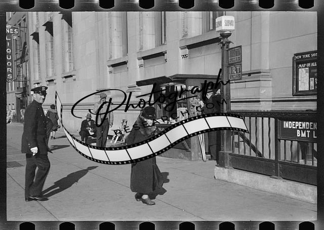Newsstand,subway,Eighth Avenue,New York,New York,NY,December 1937,Rothstein