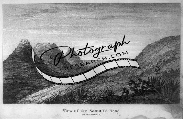 Buttes in the desert on the Santa Fe Trail,1845-47,transportation route,highway