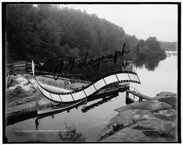 State dam,lock,Saranac River,hydraulics,Adirondack Mountains,New York,NY,c1900