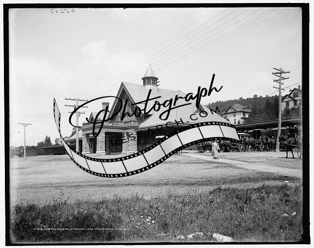 Central station,Saranac Lake,buildings,Adirondack Mountains,New York,NY,c1909