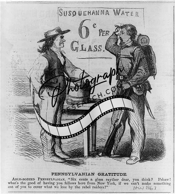 Pennsylvania gratitude,Man selling water for 6 cents per glass to soldier,1863