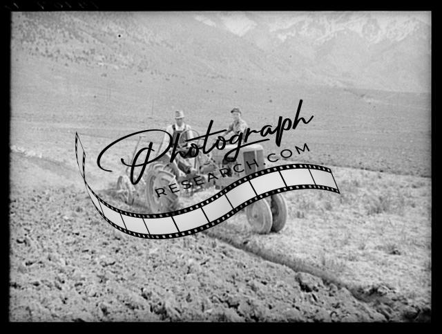 Title: This tractor, whose ownership is cooperatively shared by brothers in the Summers family, serves the first Farm Security Administration community and cooperative service established in Box Elder County, Utah. Marion and Maymard Summers appear in the picture