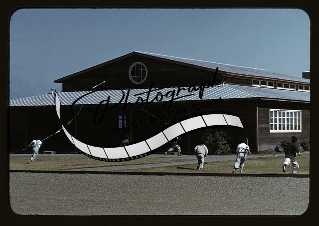Boys flying kite,community center,migrant laborers,FSA camp,Robstown,Texas,1942
